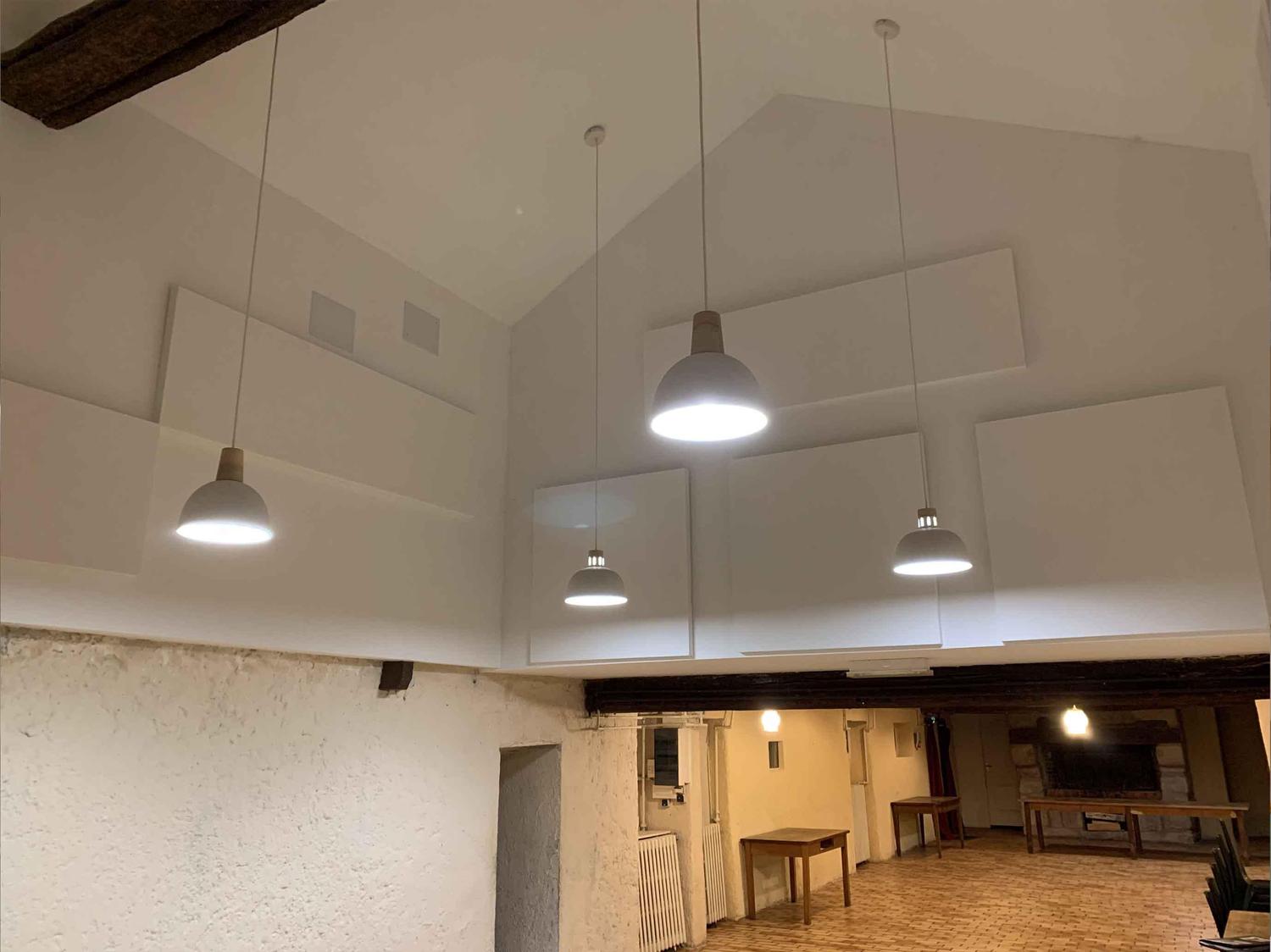 C’est un panneau composé de mousse acoustique, avec ou sans cadre en profilés aluminium, conçu sur-mesure afin de pouvoir s’adapter à de nombreux environnements. Il peut être installé en applique contre un mur, ou suspendu au plafond pour former des îlots. Quand l’objectif est de réduirer la réverbation dans une pièce et d’améliorer le confort acoustique dans des lieux tel que salle de restaurant, espace de travail, ou tout autre lieu accueillant du public, ce panneau est parfaitement adapté. Sa large palette de personnalisation en termes de formes et de coloris en fait un élément de design à part entière, il s’harmonise avec la décoration de vos locaux.